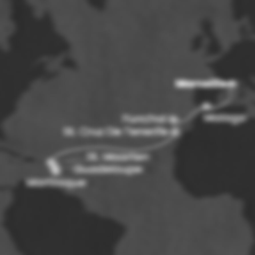 Marseille (Francie) - Malaga (Španělsko) - Funchal (Portugalsko) - St. Cruz de Tenerife (Španělsko) - St. Maarten (Nizozemské Antily) - Martinik (Nizozemské Antily) - Guadeloupe (Nizozemské Antily).