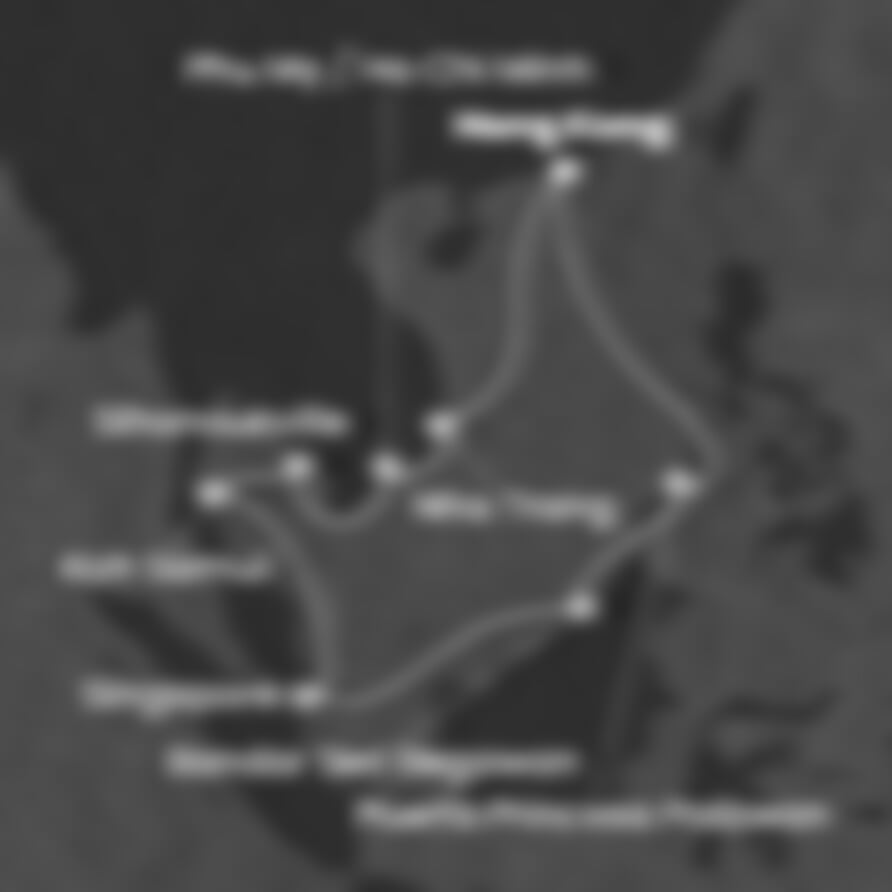 Hongkong (Čína) - Nha Trang (Vietnam) - Phu My / Ho Chi Minh - Sihanoukville (Kambodža) - KOH SAMUI (Thajsko) - Singapur (Singapur) - Bandar Seri Begawan (Brunej) - Bandar Seri Begawan (Brunej) - Puerto Princesa Palawan (Filipíny) - Hongkong (Čína).