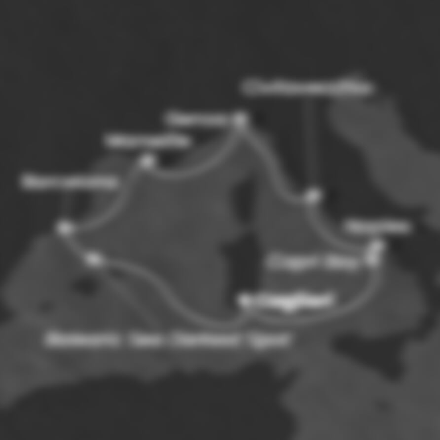 Cagliari (Itálie) - Neapol (Itálie) - Civitavecchia (Itálie) - Janov (Itálie) - Marseille (Francie) - Barcelona (Španělsko) - Cagliari (Itálie).