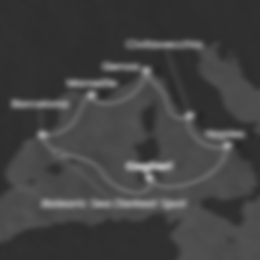 Cagliari (Itálie) - Neapol (Itálie) - Civitavecchia (Itálie) - Janov (Itálie) - Marseille (Francie) - Barcelona (Španělsko) - Cagliari (Itálie).