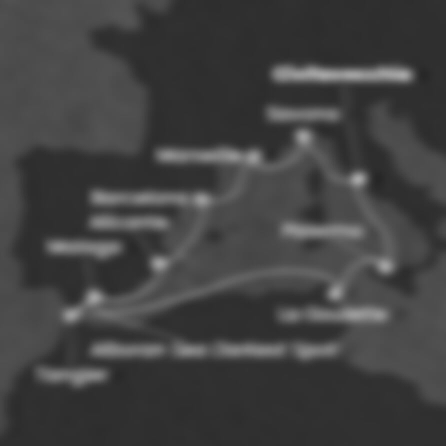 Civitavecchia (Itálie) - Savona (Itálie) - Marseille (Francie) - Barcelona (Španělsko) - Alicante (Španělsko) - Malaga (Španělsko) - Tanger (Maroko) - La Goulette (Tunisko) - Palermo (Itálie) - Civitavecchia (Itálie).