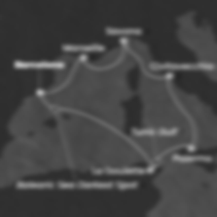 Barcelona (Španělsko) - La Goulette (Tunisko) - Palermo (Itálie) - Civitavecchia (Itálie) - Savona (Itálie) - Marseille (Francie) - Barcelona (Španělsko).