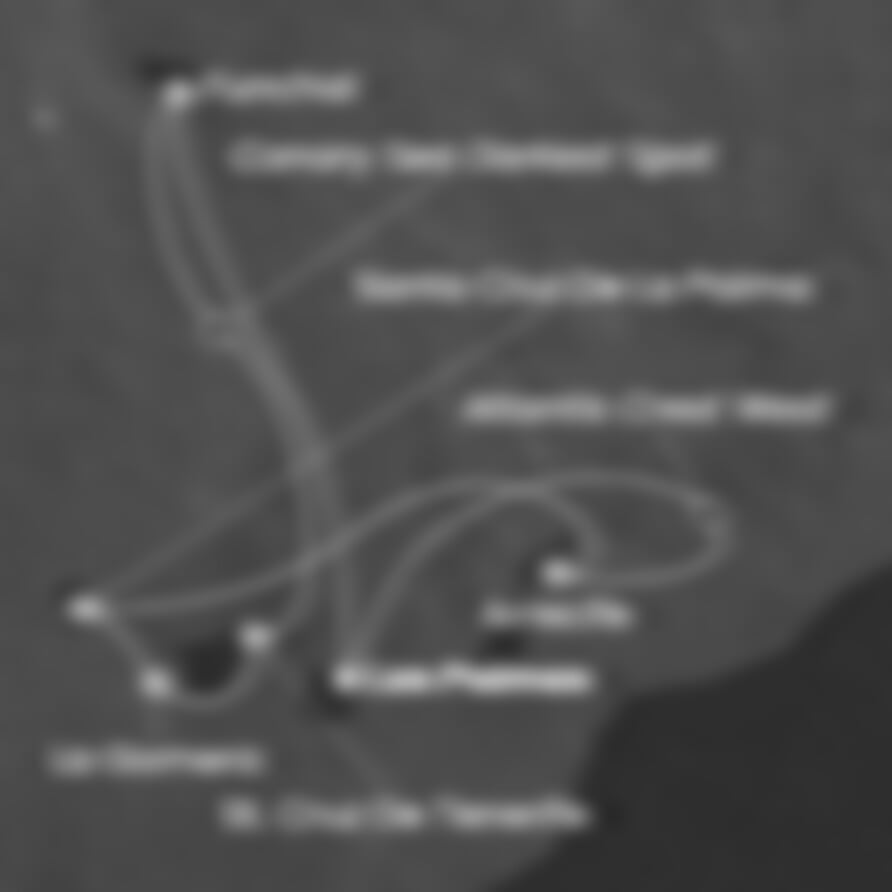 Las Palmas (Španělsko) - Funchal (Portugalsko) - St. Cruz de Tenerife (Španělsko) - La Gomera (Španělsko) - Santa Cruz de la Palma (Španělsko) - Arrecife (Španělsko) - Las Palmas (Španělsko).
